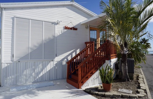 Beautiful 2BD/2BA vacation home features open water views and a full size 35' seawall for docking a boat. Amenities include central air conditioning, new tile floor, new furnishing and decorations throughout, wireless internet, flat screen television, washer, dryer, dishwasher, microwave and covered porch. Master bedroom has a queen bed with lots of closet storage, flat screen television and private full bathroom. Guest bedroom has a queen bed with full length closet storage, private full bathroom entrance. Living room features a queen sleeper sofa with flat screen television and access to covered porch. Beautiful open water views and quick access to the ocean or gulf from this property. 7 day minimum during lobster season. No Smoking, No Pets. There is a resort usage fee of $125 payable upon arrival at entrance at security gate to Venture Out.