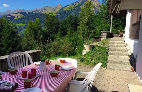 Summer in Halteweidli is the most exhilarating time – the chalet is tucked away, half a kilometer from the main road, with breathtaking views from every window, as well as its’ two terraces and large garden.