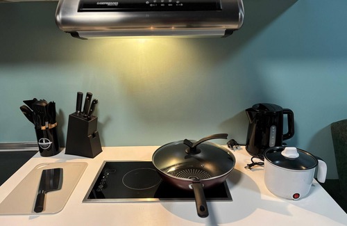 This fully furnished and thoughtfully designed studio offers everything you need for a relaxing and productive stay – ideal for digital nomads, couples, 4 pax, or solo travelers. Enjoy your morning coffee from the in-unit machine with free coffee capsules, stream free Netflix on the big 55 inches screen, or cook your favorite meals in a fully equipped kitchenette.