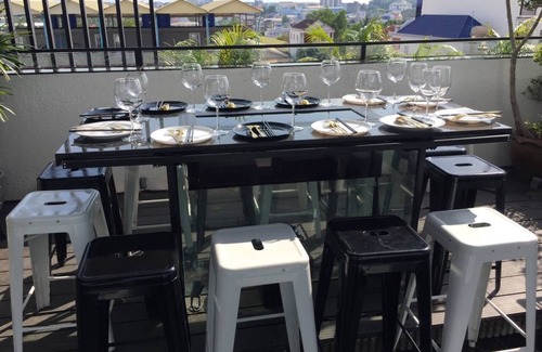 It's a modern private condo in Sihanouk Ville. One private villa for a group or a family who share five rooms and six bathrooms for minimum Twelve people . The property offers a lovely sky bar for panoramic of Sihanouk Ville, minibar, share kitchen and BBQ