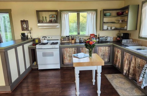 Private Italian Inspired Studio with Beautiful Panoramic Views of the Olympic Mountains, Padilla Bay and 20 acre woodlands. Located in waterfront community of Bay View (Mt. Vernon address). 700 sq. ft - King Bed, Living space, Full Kitchen, Nook and Bar seating. One bath, pedestal sink, toilet, shower. Private Balcony with outdoor chair/table and lounger. Security Gated Entrance with free parking in front of studio. Garage entrance with Keypad and Studio on 2nd Floor (Stairs to 2nd Flr).