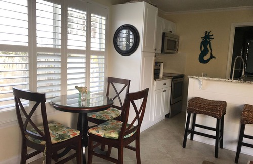 Sleeps 6! One king, two twin bunks, and a sleeper sofa. Unit completely updated with your comfort as our goal. Gated front balcony (which overlooks the pool) and private rear balcony at the rear of the complex. Laundry service just outside the door. Easy, one floor walkup and parking is just steps away. Kids will love the t.v.s in their bunks. Great for families or couples in need of a getaway. The condo has private access to the beach, which is a very short walk across the street.