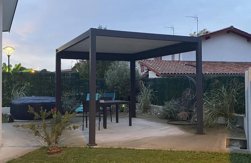 Gîte on the ground floor of the owner's house, in a quiet area, near the village of Hasparren. Kitchen (microwave, dishwasher, washing machine), living room, lounge area, shower room with toilet. 1 bedroom (1 double bed). Electric reversible heating / air conditioning included. Private terrace, garden furniture, electric plancha. 1 designated parking space located in front of the house (20m) is available in the private alley in the subdivision. Bed made on arrival, end of stay cleaning, towels and household linen included. Wifi internet access. Gîte located 10 minutes from the Cambo-les-Bains thermal baths.