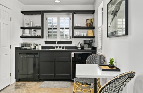 'Dove Cottage' - A full on Texas cottage (one of 5!), nestled within the serene wedding venue grounds of our partner, Allegro! It sleeps 2 in the queen-sized bed in the loft. The kitchenette is equipped with essential amenities, including a mini-fridge, toaster oven, coffee maker and a Keurig, allowing you to prepare light meals and snacks at your leisure. See the Home Details for More!!