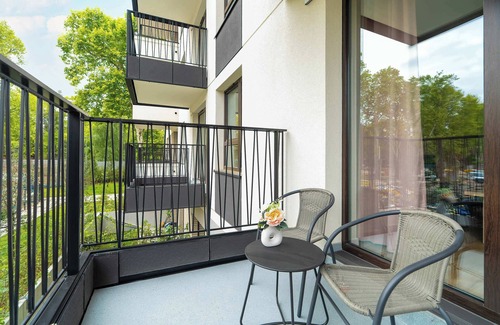 Welcome to a sunny apartment of 42.78 m2 - the perfect place for an unforgettable stay for 4 people! This spacious apartment was designed with maximum comfort in mind. The property has two separate bedrooms. In the first of them there is a comfortable sofa bed, which will provide a peaceful sleep for two people, as well as a large Smart TV (50 inches). This is a great place to enjoy a movie night together after a busy day. From the room you can walk out onto a charming balcony, where garden furniture awaits. This space will be great when you want to drink your morning coffee in the sunshine. The second bedroom is furnished with two comfortable, juxtaposed single beds and a desk for remote work. Thoughtful interior design with bright colors and elegant details promotes tranquility. A separate kitchen will delight any cooking enthusiast. Here you will find an induction cooktop, refrigerator with freezer, microwave, transfer coffee maker and electric kettle. A dishwasher is a great convenience, which will save time on cleaning and spend it on shared moments. The bathroom with shower offers a welcome toiletries kit, a hairdryer and a washing machine, which is extremely practical for a longer stay. An added bonus is access to an underground parking space. There is also a lovely patio in front of the building ideal for relaxing and spending time outdoors.