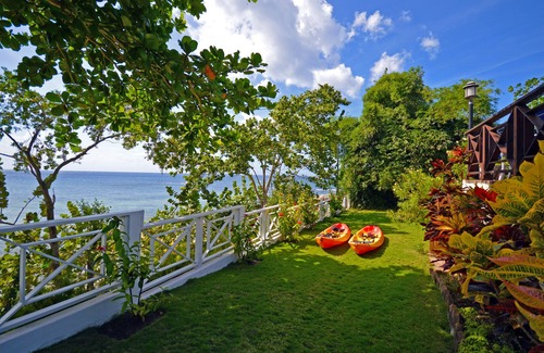 Idleawile Villa is a beautiful, family friendly luxury villa located on the Rio Bueno Harbour, close to Discovery Bay. The water-front villa has its own white sand beach and swimming pool, and offers stunning views of the bay and ocean. The comfortably furnished, spacious villa is perfect for a relaxing vacation for a large family or group of friends traveling together.