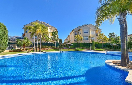 Wonderful and comfortable apartment with communal pool in Jávea, Costa Blanca, Spain for 5 persons. The apartment is situated in a residential beach area, close to restaurants and bars, shops, supermarkets and a tennis court, at 1 km from Arenal Beach and at 1 km from the Mediterranean Sea.The apartment has 2 bedrooms and 2 bathrooms. The accommodation offers privacy, a beautiful lawned garden with trees, a lawned communal garden with trees and beautiful views of the mountains. Its comfort and the proximity to the beach, places to shop, sports activities, entertainment facilities, places to go out, sights and culture make this a fine apartment to spend your holidays in Spain with family or friends.
