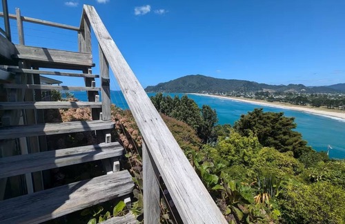 Jaw-dropping panoramic views from the deck, easy living and a bachy vibe on Mount Paku.