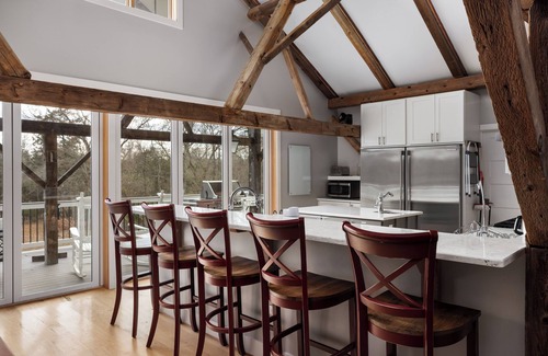 JCS Farms is an upscale farmhouse built on 4 acres, next to a creek, and constructed around a 200+ yr timber frame. The unique architecture of this antique barn frame combined with modern design will be the perfect setting for your next getaway. Enjoy the sights and sounds of nature as you grill out on the covered deck. Fully gated home. Fire-pit, basketball, ping-pong, & more! Close to Bull Run Park/Shenandoah/DC/Civil War landmarks/wineries. This is a private residence on a shared property.