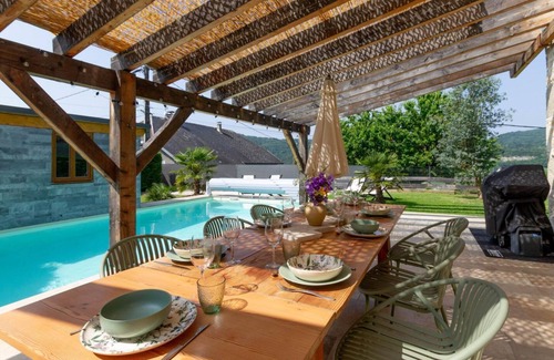 JEANNINE AND CLEMENTINE'S BARN is located in Saint-Germain-la-Chambotte. JEANNINE AND CLEMENTINE'S BARN provides accommodation, featuring Parking, TV, Private Pool, among other amenities. This House features Parking, TV, Private Pool, to make your stay a comfortable one.