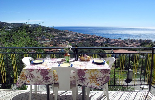 "Joly (SLR111)", 3-room apartment 65 m2 on 1st floor. Bright, practical furnishings: living/sleeping room with 2 beds (80 cm), dining table and satellite TV. Exit to the balcony, to the terrace. 2 rooms, each room with 1 french bed (160 cm). Kitchen (4 hot plates, mini-oven, oven, dishwasher, kettle, freezer, electric coffee machine). Exit to the balcony. Shower/WC, bath/shower/WC. Gas heating. Balcony 13 m2, terrace 16 m2. Terrace furniture, balcony furniture, barbecue, deck chairs. Marvellous view of the sea, the bay and the town. Facilities: washing machine. Internet (WiFi, free). Parking (2 cars). Please note: maximum 2 pets/ dogs allowed. Private entrance. IT008024C2C813RPNQ