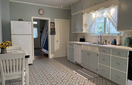 This renovated riverside Farmhouse Style 2 story home located "Where Mountains Touch Rivers" in the Laurel Highlands features 3 Bedrooms and 2 Bathrooms, a Well-Equipped Kitchen, Formal Dining Room, Large Living Room, and Laundry. Outside is a Patio, Fire Pit, BBQ, a covered Front Porch, three Rivers, and Youghiogheny Lake. The home is surrounded by bike trails, hiking, and water sports. Key amenities are near the town square within walking distance, just across the Casselman foot bridge. Bedrooms are still under renovation, but will be ready soon, with Pics! (1 Queen, 1 Full, 2 Twin Beds)