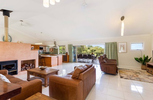An amazing home with beautiful views, you will experience total tranquillity. The large home is nestled in front of the rainforest - it is a national park, and nobody will come and disturb your serenity. It is off the grid but solar supplies all the comfort. Starlink's (Elon Musk) fast and unlimited Wifi let's you connect to the world if you need it! No air-conditioning is needed as a fresh breeze comes through at any time. It is made to be comfortable without aircon. In fact, you will be happy to use the in-house fireplace during some nights of the colder months (June-August). Check out the Platypus in the spring-fed deep water lagoon early in the morning or just sit on the veranda and watch pademelons, bandicoots, kookaburras and other wildlife. The buff-breasted Kingfisher chooses Julatten as his breeding ground and you can see them from Mid-October to early March. We have a great Funky Monkey Bars Playground and XXL Vuly Trampoline to keep the kids entertained around the house. Have a dip, a swim or paddle on the lagoon, with it's beautiful healthy natural water (n crocodiles on the mountains!). A small wharf with a ladder makes entry & exit easy. In the evening, enjoy a wine sitting next to the fire bowl in front of the house, or have a BBQ on the veranda. The house is fantastic for just a couple's getaway or for large families or friend groups. 25 minutes to Port Douglas with shopping, entertainment and the beautiful 4-mile Beach for a walk or run along the beach or a swim, it is a lovely flat beach for kids and adults. 20min to Mossman and Mossman Gorge.