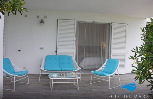 In the heart of PUGLIA, at the gates of SALENTO and the magical panorama of the VALLE d'ITRIA, in one of the most suggestive corners of the coastal stretch of the RIVIERA dei TRULLI, famous for the beauty of the beaches and the crystalline colors of the sea, the comfortable and equipped Holiday House ECO DEL MARE. Furnished with taste and care and independent of each other, SALTO NEL BLU (this announcement), BREZZA DI MARE (announcement n. 6890062) and ALBA CHIARA (announcement n. 6890056) are the apartments that compose it. Each apartment has free wi-fi connection. Ideal for those who want to spend a holiday all sea and sun and also suitable for families with children, the SALTO NEL BLU apartment (this announcement), large and exclusive, is located in a privileged position opposite and a few meters from the sea; its particular position and large windows allow you to live in symbiosis with the sea, overlooking the infinite as if by magic. It consists of two double bedrooms, a large living room-kitchen equipped with a double sofa bed (total sleeps 6 with the possibility of adding, without additional costs, a camping cot for children up to 4 years), bathroom with shower in crystal with shower panel for hydromassage and chromotherapy, very large covered veranda furnished with nice sofas, table with chairs for the dining area, deck chairs and sun loungers. The garden is large and well-kept. The particularity of this holiday home is the proximity to the sea (just 30 meters) and direct access, through the private garden, to the beautiful sandy beach of the CAPITOLO di MONOPOLI, known as the DUNA or Lido LOSCIALE. But the RIVIERA dei TRULLI also includes other beaches, such as the famous one of EGNAZIA, called CASE BIANCHE, which is only 2.5 km away, where you can bathe in history, diving into the transparent waters near the archaeological excavations and which boasts the FLAG BLU 2016 and 4 VELE di LEGAMBIENTE, up to the beaches of the State Natural Reserve of TORRE GUACETO, an important area of naturalistic interest where you can swim in the unspoiled nature of the large protected marine area also frequented by "caretta caretta" turtles.