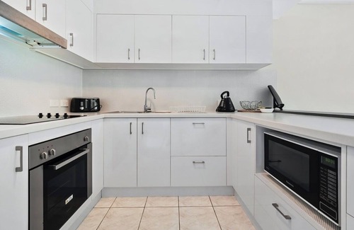 2 bedroom self-contained townhouse featuring queen beds in both bedrooms - Spacious, Spotless and Quiet. A 5-minute walk along the shaded melaleuca path will bring you directly to the sandy shores of Yorkeys Knob Beach. This beautifully renovated townhouse exhibits modern decor, gleaming tiles, and free WIFI. Bathroom upstairs and additional toilet downstairs. Office/workstation. Fully equipped open plan kitchen.