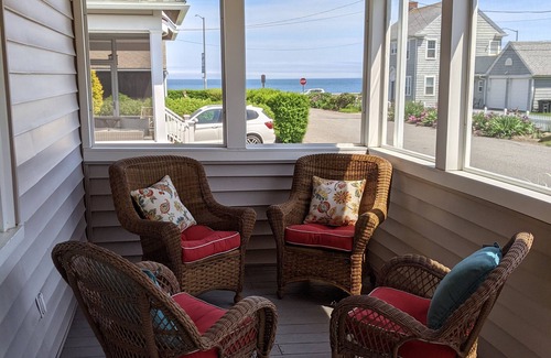 This home has a spectacular view of the Atlantic Ocean from the spacious screen porch that overlooks the Narragansett Seawall. It is located just 150 feet from the Narragansett Seawall, a great place for a walk or run. Just a short walk to the Narragansett Town Beach (the best beach in town), the house is located on a dead-end street of well-maintained homes in Narragansett Pier.