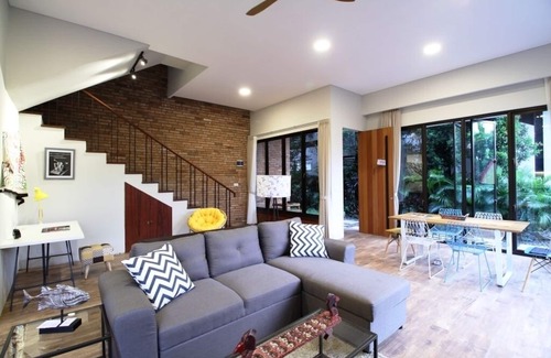 Set among a modern and chic villas complex, this private studio in a villa complex comes with a beautiful garden, refreshing swimming pool, cozy lounge area and a fully-stocked kitchen. Enjoy access to amenities such as gym, laundry, Wifi, and 24/7 security. Come meet other guests who might be an entrepreneur, designer, artist, or those who just need a break from the bustle of the city. Come be part of our coliving community.
