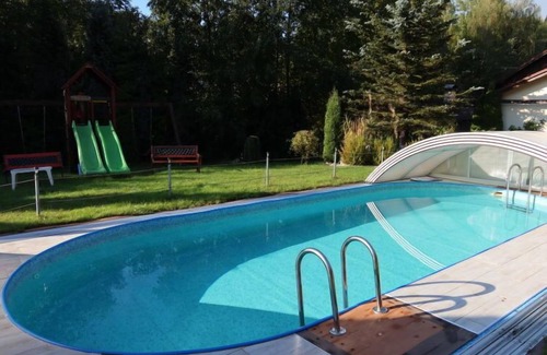Child friendly, cosy residence, 2 storeys. In the resort, in a quiet, sunny position, 1 km from the skiing area. For shared use: property, swimming pool (10 x 4 m, seasonal availability: 01.Jun. - 30.Sep.) with salt water. Pergola, garden furniture, barbecue, children's playground. In the house: central heating system. Parking at the house. Shop 200 m, supermarket 3 km, restaurant 300 m, bus stop "Desná, centrum" 500 m, railway station "Desná,centrum" 200 m, outdoor swimming pool 3 km, thermal baths "Cieplicke termální lázně/PL" 40 km. Ski lift 3 km, ski rental 3 km, ski school 3 km, cross country ski track 3 km. Nearby attractions: Vodopády na Černé Desné 3 km, Rozhledna Světlý vrch 3 km, Rozhledna Špičák 4 km, Rozhledna Špička / Malý Špičák 5 km, Detoa / výroba dřevěných hraček + muzeum 6 km. Well-known ski regions can easily be reached: Severák 1 km, Tanvaldský Špičák/Albrechtice 4 km, Černá říčka 5 km, Harrachov, Bedřichov 14 km. Well-known lakes can easily be reached: přehrada Josefův důl 17 km. Hiking paths: Protržená přehrada 8 km, přehrada Souš 12 km, Jizerka 14 km.