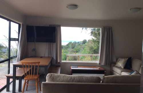 Cosy rustic style bach with great views of the sea. It has 3 bedrooms, 2 in the main house, with one queen bed and 1 single bed. The other bedroom is accessed from the outside staircase and has a queen bed also. It is a short walk down the road to either Breaker Bay or Kaiteriteri and not a long drive to the beginning of the Abel Tasman Track or Split Apple Rock Beach Track. There is a great mountain biking park a short pedal away. Amazing bird life and plenty to see and do. Sea kayaking, boating, hiking, mountain biking all first class and handy. The crystal clear waters and golden sand beaches with native bush make it a great holiday.