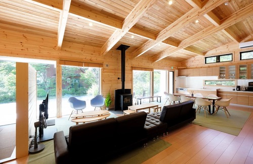 This large log house is conveniently located just 6 minutes by car from central Karuizawa, and you can reach the large shopping mall Tsuruya in 8 minutes by car.