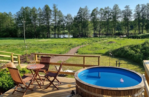 Villa Kaunisvirta is a beautiful gery logwood cottage for year-round use in Pyhtää, about 100 km east of Helsinki. The villa is located by the river, right in the heart of nature. The villa has accommodation for 10-12 people in two separate cabins, in the main building and in a separate sauna building. A hot outdoor tub available for rent at 80e/day. The villa also has a barbecue canopy with an open fireplace. A swimming pier on the beach.