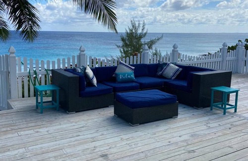The property has two beach view bedrooms and one garden view room. The view of the beach is stunning but equally so is the view of our garden where our mother's green thumb shines through. Each bedroom has its own bathroom and there is a sleeper sofa in the living room for children or extra guests. Our house has its own private beach stairs and path for easy access to the beach. Be soothed to sleep by the sound of waves breaking on the shore. Beautiful deck overlooking the beach for your morning breakfast or afternoon cocktail. Sleeps 8 people. Perfect for families and couples looking for an adventure, romantic getaway or peaceful, relaxing time. Housekeeper included. Beautiful garden maintained by a gardener. Beautiful patio furniture for dining and chill-axing. We truly love our home, Kelly Krest, we are 3rd generation owners and our love for our home is reflected in the warm feeling you will get when staying and relaxing there. VRBO and Home Away accept an alternative payment method for our property which is validated by both companies . The payment is done through wire transfer to our Bahamian bank account as credit card payments can only be taken for American bank accounts .