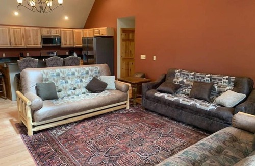 This property is on the east side of Kelly Lake with lake views and is located on the UTV/ATV accessible trails. Great accommodations for friends or family that want to get away to the north woods. This area of the lake does not have a pier and is not for swimming but you could launch a kayak or paddle board here. There are also public beaches for swimming and great local places for food and drinks. The great room has 3 queen futons and the master bedroom has a queen bed.