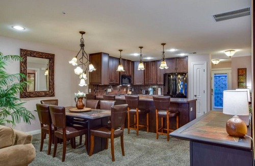The slate table in the dining room offers seating for 6. You'll feel like you're out to dinner at a luxurious restaurant when you enjoy your meals in here. Or spread out and play some board games, cards, or work on a serious puzzle.