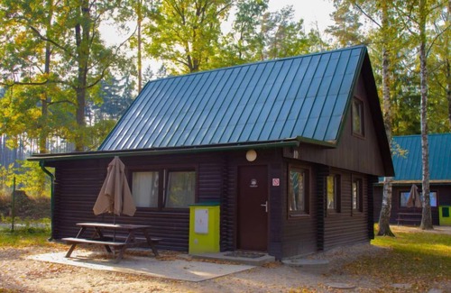 Child friendly holiday village "Kemp Stříbrný rybník". 25 houses in the resort. In the district of Malšova Lhota, 5 km from the centre of Hradec Králové, along the wooded area, on the lake. For shared use: property. Table tennis, boccia (extra), beach volleyball, arbour, barbecue, fireplace, children's playground, bathing jetty. In the complex: reception, restaurant, bar, bistro, playroom, washing machine (for shared use, extra), bicycle rental. Parking (extra) on the premises. Bus stop "Stříbrný rybník" 700 m, railway station "Blešno" 5 km, sandy beach, bathing lake 50 m. Sports harbour, minigolf, sports centre, walking paths from the house, cycle lane, fishing possibilities 50 m. Nearby attractions: Adventure park Firmsport, letní kino, tutistický vláček do lesa, Stezka siluet, Rytířské hradiště 3 km, Park Na Větvi 3 km, Obory se zvěří 4.2 km, Obří akvárium, Botanická zahrada 4.7 km. Hiking paths: Pohádková, Vodnická stezka 6 km, Planetárium, planetární stezka 8.4 km, Zoopark Stěžery, Rozhledna Milíř 15 km. Please note: entertainment in the season. Suitable for families. Fishing [permit required]. The photograph shows a typical example.