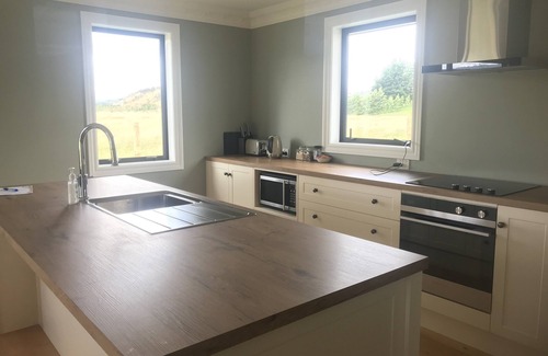The Chalet is self-contained. It has a oven, fridge, microwave, sink, cooking equipment, Basic Pantry items, Washing Machine, TV, Free Wi-Fi access. Large bathroom with spa bath. The chalet sleeps 5 it has a queen bed in one bedroom, 2 single beds which can become a king on request, fold out bed available in the lounge. Baby equipment, toys and small bikes can be arranged if needed. Continental breakfast provisions available in the Chalet. Complimentary bottle of wine and baking on arrival. The Kepler Oaks chalet is unique it has panoramic view from every window, but is tatally private from our home. You can sit on the porch with a coffee or wine, relax and enjoy the glorious views, the horses grazing and the birds singing and wake up and smell the fresh bush. The chalet guests have use of a hot tub where you can experience the stars in the purest dark skies of the southern hemisphere or enjoy the mountain views and watch the horses, alpaca, sheep and lambs.