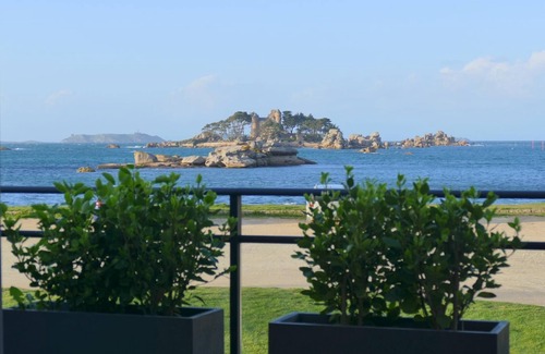 Your vacation rental includes on the first floor: a living room - living room - kitchen (well fitted out) crossing on one side with sea view and on the other side with courtyard view, access to 2 terraces: sea view of 12 m2 and courtyard side of 10 m2 with garden furniture. Sleeping area with 2 bedrooms: 1 bedroom (2 80x200 beds), 1 bedroom (1 160x200 bed), shower room, wc with washbasin. On the ground floor: entrance with storage, a garage (cannot accommodate a vehicle - only bicycle, motorbike...) with laundry room Private parking in front of the house. Semi-detached building with other seasonal rentals. Breathtaking view of the castle of Costaeres and one of the most beautiful beaches of Trégastel - Tourony! Ideal setting for your next vacation in the heart of the Côte de Granit Rose: many activities on site or a few meters away: swimming, hiking on the GR34 which is 20 m away, paddle & kayaking are available 500 m away on the beach of Quo Vadis, cycling, tennis, skate park at 700 m... unless you prefer to enjoy the terraces while reading. In Trégastel you can stroll through the market on Mondays, one of the biggest in the department in summer, swim in the forum de la mer (aquatic complex with sea water heated to 30°), and enjoy the breathtaking landscapes along the along the customs path. The resort of Perros Guirec is 4 km away (its beaches, port, casino and thalasso), Lannion 13 km - city of art and history
