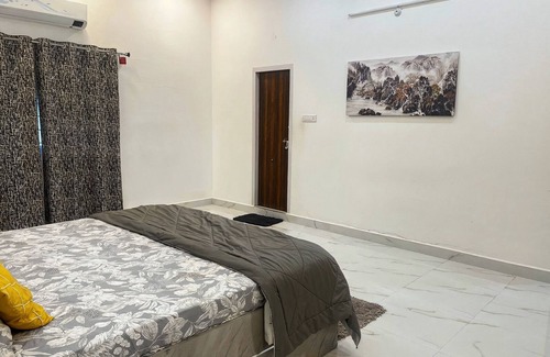 Comfortable Bedrooms: The 2 ground-floor bedrooms are fully air-conditioned and comfortably sleep 4–5 guests each. Enjoy plush bedding, wardrobes, dressing mirrors, and attached garden-view bathrooms.