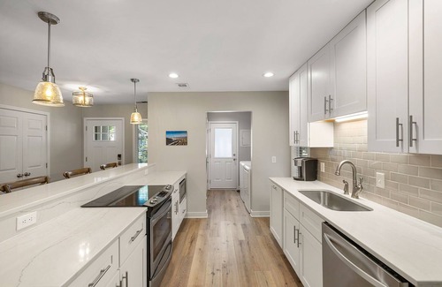 Quiet and convenient location! Enjoy the comfort of this beautifully renovated 2 bedroom, 2 bath cottage in Kiawah's West Beach area. Open floor plan with screened porch and deck overlooking a lagoon and just a short walk to the beach. Beautiful all new kitchen with quartz counter tops and stainless appliances. Comfortable furniture with large ottoman to put your feet up and relax. King sized beds and TVs in both bedrooms. Bathrooms new in 2025. ATT U-verse cable and WIFI included. Enjoy the outdoors on the screen porch from the cushioned swivel rockers or sit on the deck and rock. Washer and Dryer in unit. Access to the community pool on Duneside Rd is included. No smoking. NO PETS.