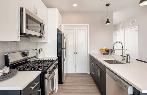 This sunlit apartment, located in a brand-new luxury complex at the center of New Haven’s historic downtown, offers unparalleled comfort, service, and amenities. You can watch a movie on a 4K HDTV, work in the conference rooms, and whip up dinner in a fully-equipped kitchen.