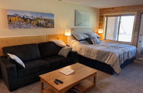 Enjoy relaxing in this nicely updated mountain cabin styled studio condo. Full kitchen with all you need to cook your own meals if you wish. Lovely full bathroom for showering, bathing kids, soaking sore muscles after a full day of adventure.