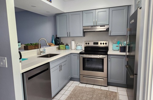 Freshly updated 1BR condo on a high floor in beautiful Makaha Valley on the Leeward side of Oahu. Enjoy spectacular views of the mountains and ocean from the floor to ceiling windows. New cabinets and countertops in kitchen and bath, king size bed, and SS appliances. This is a gated community with a beautiful large, and heated salt pool, grilling area, free parking, on-site laundry and resident peacocks.
