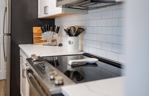 This modern, comfortable space has everything that you need for an unforgettable stay! Large picture windows throughout the house allow for healthy natural lighting. Our open-concept kitchen, dining, and living room has high-ceilings, the perfect area for lounging after a day of exploring! Enjoy all of the comforts of a modern home, such as reliable, high-speed WiFi, laptop friendly workspaces, a fully equipped kitchen, HD television, washer & dryer in-unit, and free parking. Have a morning coffee or evening drink on the patio, relax in the pool, workout in the gym, or take the kids to play in the playground. With pets allowed, this unique designed space is perfect for the whole family and extended stays are welcome!