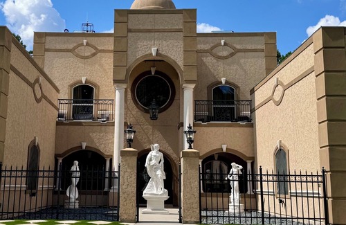 At the heart of the estate, King's Landing presents a realm of architectural splendor. From the onyx-adorned master suite bathroom, illuminated by an elegant chandelier, to the grandeur of the rotunda foyer, every element exudes luxury. This opulent space is equipped with everything you need for an indulgent stay: a fully-equipped kitchen, a heated indoor pool, smart TVs, and a sophisticated billiards room. The bar, complete with a lounge, poker table, and an ice maker, is a focal point for evening relaxation. For those who seek a blend of culture and entertainment, our rich library, vinyl record player, and an extensive collection of vinyls and movies await. The tranquility of the courtyard, adorned with ivory statues and a covered terrace, offers a serene escape.