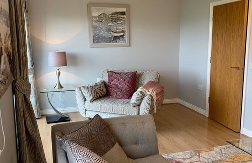 The bright and airy lounge, which is situated on the first floor, has a Juliet balcony with large sliding doors that allow you to bring the outside inside. There are two large modern comfy couches with in the main seating area and a large snuggle chair next to the balcony which is perfect for enjoying a relaxing drink whilst looking out over The Braid and the Marina. There is a large smart TV in the room which allow access to streaming services such as Netfilx, Amazon and Spotify.