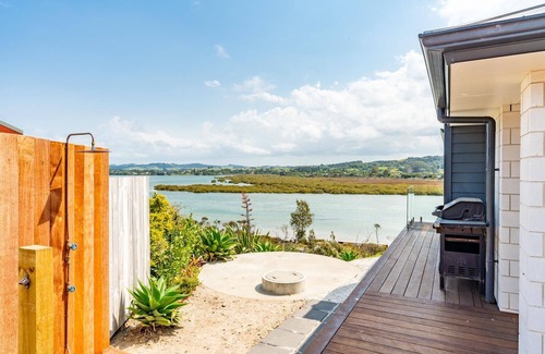 Kneedeep is a beautifully appointed, sunny, modern holiday home at the end of a quiet cul-de-sac in the Heads. Recently completed, this holiday home has been designed to make the most of the stunning estuary views which can be seen from the open-plan living/dining/kitchen, master bedroom and of course the covered deck.