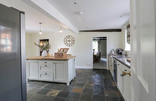 Amenities: Oil central heating with open fire and woodburning stove. Electric range oven and hob, Samsung combination microwave, American fridge/freezer, washer/dryer and dishwasher, Tassimi coffee machine. Smart TVs, WiFi, football table, darts board, Playstation 3 with games, DVDs and board games. Fuel and power inc. in rent. Bed linen and towels inc. in rent. Highchair and travel cot available. Off-road parking for 6+ cars. Two well-behaved dogs welcome at an additional charge of £25 per dog, downstairs only. Outside courtyard and dog yard, walled garden and gardens with lawns, patio and furniture. Brick-built charcoal barbecue. Hot tub. Outdoor hot water tap for dog washing. Sorry, no smoking. Shop 2.5 miles, pub 2.7 miles. Note: Private chef available by prior arrangement. Note: Beautician and masseuse available by prior arrangement. Note: In keeping with the age and character of the building there are uneven floors and some steps between rooms, please take care. Note: There is a ha-ha with steps in the main garden, please take care. Note: Any bed configuration requests must be made prior to the date of arrival or may incur linen charges.