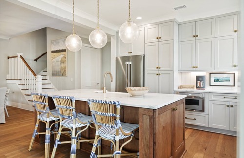 Find yourself nestled in nature at this spacious townhome located in the new coastal resort destination Kiawah River. Offering plenty of space to relax you will enjoy the living area outfitted with 4 chairs and one large sofa and a wall mounted large smart tv over the fireplace. In the kitchen you will find a large island with bar stool seating, custom cabinets, and high-end appliances. Off the kitchen is a second seating area for 4, and outdoor patio and dining area with plenty of room for everyone.