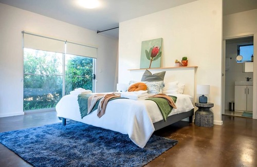 Two private parking spots are located right out front. Climate comfort is thoughtfully considered, with split-system reverse cycle air conditioning and heating in the living area, and a gas heater in the bedroom for cosy nights in. Please note that the guesthouse is located at the base of the driveway, while the host lives separately in a brick home at the top. There are no shared spaces, so privacy is assured throughout your stay.
