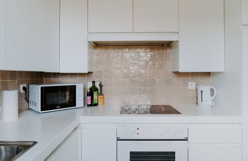 Prepare a home-cooked meal in the kitchen, complete with an oven, a stovetop, and a refrigerator, as well as a coffee maker, an electric kettle, and a microwave. Bathroom amenities include a hair dryer, towels, and toilet paper. Other amenities include a fireplace, bed sheets, an ironing board, and heating.