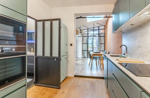 🔹 Semi-open kitchen : induction hob, fridge, freezer, oven, microwave, dishwasher, filter coffee maker no. 4, kettle