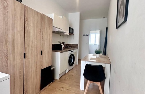 - D’une cuisine équipée d’un réfrigérateur, d'une machine à laver, d'une plaque de cuisson deux feux, d’une machine à café, d’une bouilloire, de vaisselles, et d’ustensiles de cuisine ainsi qu'une table à manger. Un espace qui vous permettra aussi d’être en télétravail depuis l’appartement grâce à la Wifi !