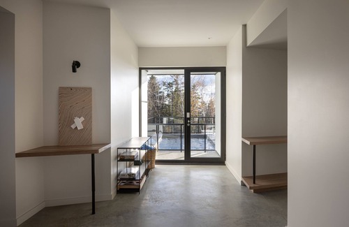 This luxury contemporary house located in Cap-à-l'aigle (La Malbaie), in Charlevoix, offers a unique stay experience. The ascent of the hill, then of the staircase of the house, allows these impressive views of the river, the Malbaie River estuary and the Mont des Eboulements. Upstairs, the heart of the house, housed between the evening terrace and the morning terrace, offers panoramic views of the exceptional setting of Charlevoix.
