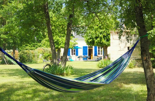We invite you to L'Ile Bellule in this charming Tuffeau stone house with large garden and wooded park, equipped with outdoor games for young and old.