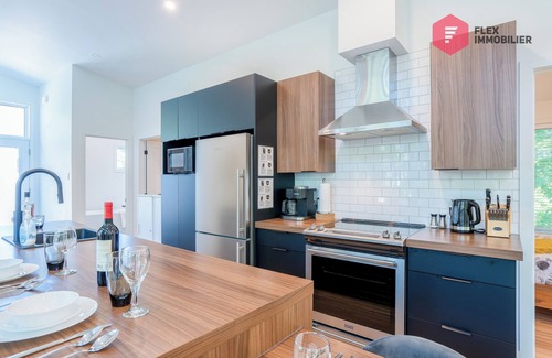 - Well-equipped kitchen with DISHWASHER, convection oven, hybrid Keurig and filter coffee machine, fondue pot... and plenty of work space for cooking on the spacious countertop