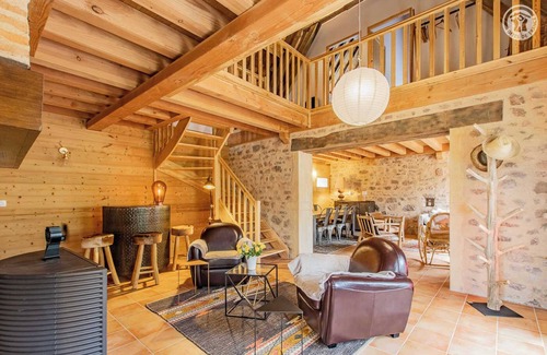 Authentic charming traditional 19th century Brionnaise farmhouse carefully restored according to the rules of the art, perched in a "belvedere" on a panoramic south-west plateau overlooking a bucolic pond full of fish (private to the gîte) with authorized "no-kill" fishing (carp , pike, roach…). Total tranquility in the countryside, in a small rural hamlet nestled on the wooded foothills of Mont Saint-Cyr (highest point of the Mâconnais mountains with 771m, with an exceptional 360° panoramic view up to Mont-Blanc on a clear day!), 3.5 km from the picturesque little village of Gibles. Magnificent unspoiled countryside & natural setting, nestled on the immediate edge of meadows and a small forest, in the hollow of the splendid hilly Charolais bocage, dotted with numerous ponds & rivers. Landscaped setting of great beauty, 100% soothing & relaxing. Vast panoramic terrace exposed offering a very beautiful unobstructed view "in balcony" on the gentle surrounding countryside and the pond of the property. Pétanque ground & very rare unusual golf "putting green" available. Very comfortable cottage. Very spacious. Vast living room with a very beautiful "cathedral" volume. Warm rooms nestled under the roof in "cocoon" mode. Very elegant country character with contemporary touches, in a "chic country" spirit, enhanced by careful heritage restoration (conservation of the imposing period stone walls, brick fireplace mantle & sumptuous original framework). Lots of charm & character. Opulent & refined atmosphere. Ultra cozy & cozy. Composition: Detached house on 2 levels. Wireless. Electric heating + wood stove (insert). Ground floor: kitchen-living room-lounge, bathroom (shower/Wc). 1st floor: 3 bedrooms (double bed 140x190cm / 2 single beds 80x200cm that can be combined into a double bed 160x200cm / double bed 140x190cm). Courtyard-parking + terrace + pétanque ground + private golf putting green + fishing pond. Supermarket 6km. Amenities and train station 7 km.